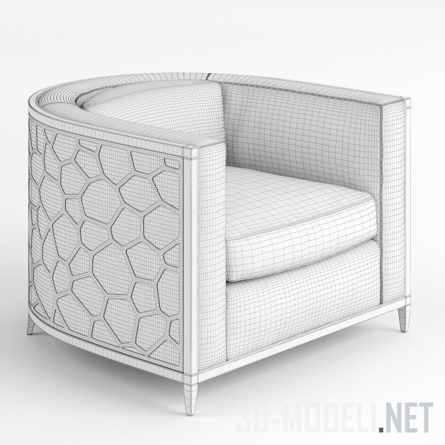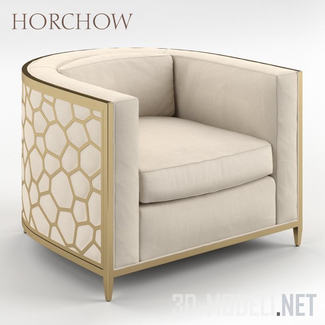 Элегантное мягкое кресло, модель Golden Curved Chair Horchow. Мягкая часть кресла обернута листовым металлом золотого цвета, с перфорацией. Размеры кресла: 90W x 91D x 69H.