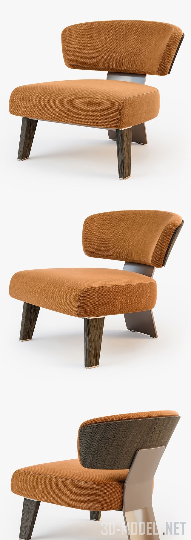 Низкое деревянное кресло Minotti CREED WOOD от дизайнера RODOLFO DORDONI. Кресло предоставлено в двух вариантах: сиденье и спинка обтянуты текстилем оранжевого цвета или темной кожей. Размеры кресла: 750 х 810, H 680 мм.