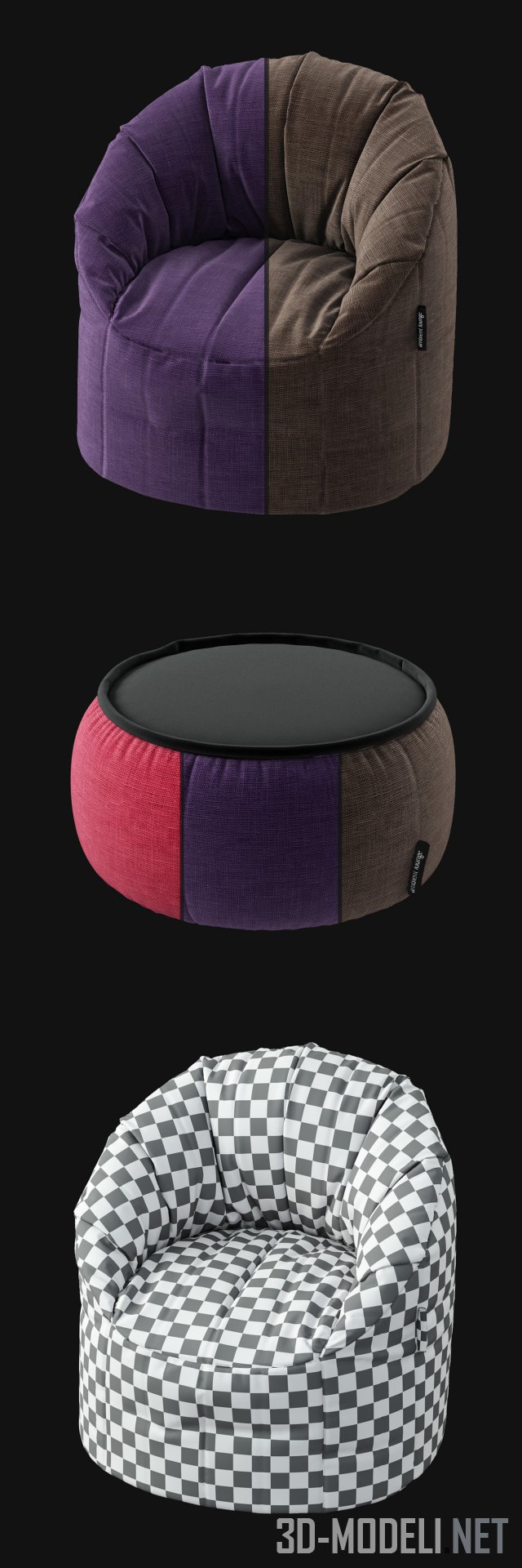 Набор мягкой мебели с оригинальным дизайном, от Ambient lounge - в комплекте кресло Butterfly и пуф-столик Versa. Столик с мягким тканевым цилиндрическим корпусом. Чехлы мебели представлены в трех цветах: коричневом, фиолетовом и малиновом.