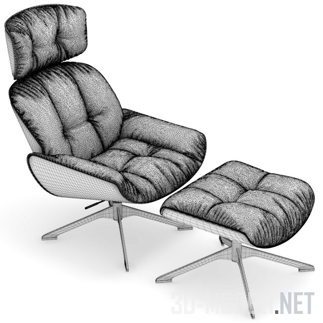 Дизайнер Cedric Ragot для бренда Roche Bobois (Франция) разработал кресло QUIET LIFE. Три элемента, составляющие структуру кресла, на самом деле представляют собой три подушки, которые шарнирно соединены друг с другом, чтобы поддерживать каждую часть тела в разных положениях. Механизм остается видимым, а крестообразное основание уравновешивает графический вид дизайна.