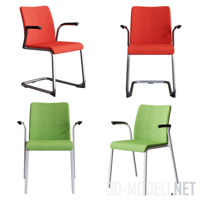 Несколько вариантов современных цветных офисных кресел, сделанных из металла и пластика, от производителя Steelcase. Сет содержит: