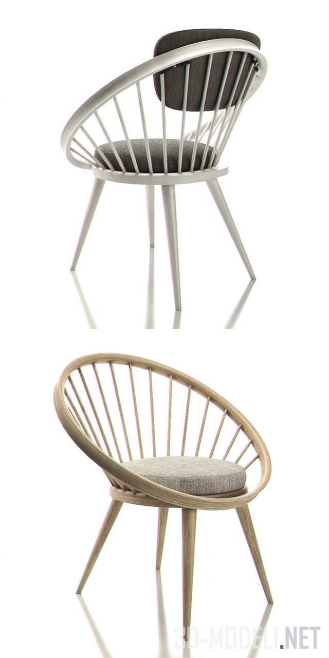 Два кресла Circle Chair в стиле баухаус, 50-х годов ХХ века от шведского дизайнера Yngve Ekstrom. Кресла отличаются отделкой: с белым лаком или цвета светлого дерева. На одном кресле к кольцу конструкции добавлена небольшая мягкая спинка-подушка, обитая серым текстилем. Габарит кресла: 61 х 71 х 43 см.