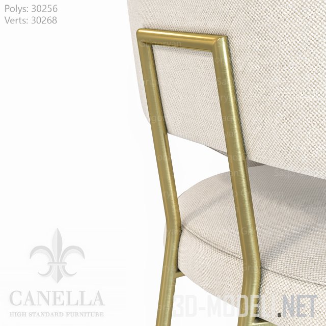 Современное элегантное кресло с легким и изысканным дизайном, модель линейки Klass от компании Canella. Светлый цвет обивки отлично гармонирует с латунной отделкой ножек.