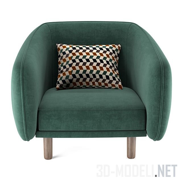 Уютной формы кресло с обивкой из ткани насыщенного изумрудного оттенка. Обивка хорошо сочетается с деревянными ножками, а форма кресла приглашает отдохнуть. В комплекте декоративная подушка. Размеры кресла: W880 x H780 x D880 мм.