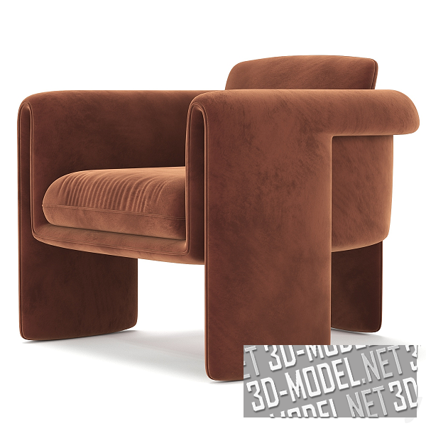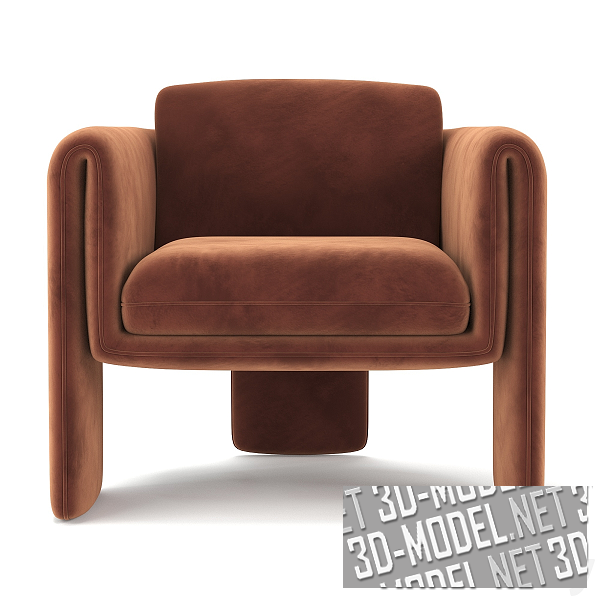 Современное оригинальное кресло Floria Velvet на трех широких уплощенных ножках. Основа кресла сформирована из цельного, «сложенного» элемента с мягкими подушками на сиденье и спинке. Яркая коричневая бархатная обивка нанесена на всю поверхность. Габарит кресла: 109х109х97,5см.