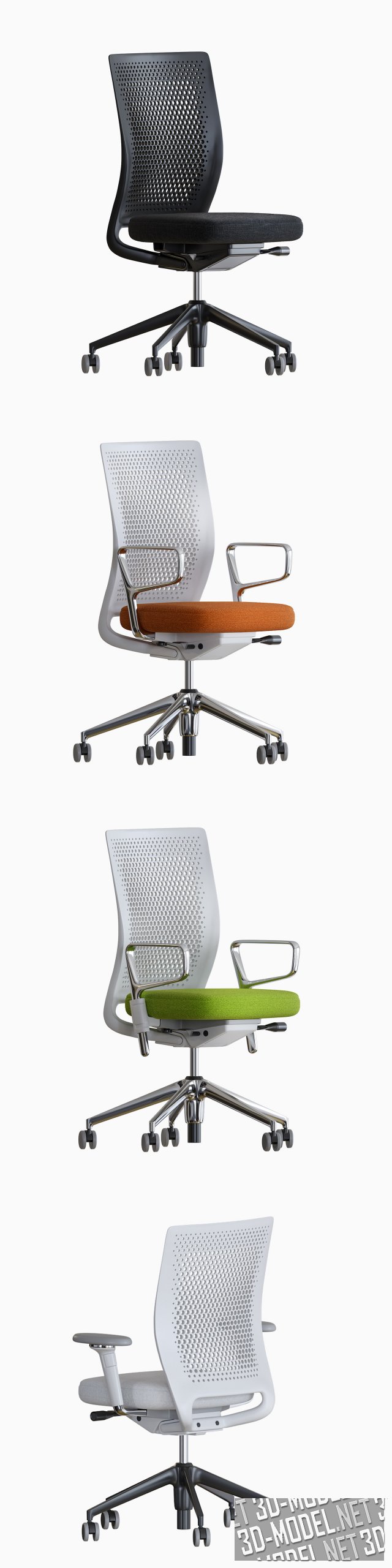 Четыре варианта современного мобильного офисного кресла Vitra ID Air. Литая пластиковая спинка с круглой перфорацией эргономически изогнута. Пять пар роликов обеспечивают плавное перемещение. Современный газовый лифт поможет установить нужную высоту сиденья. Подлокотники - регулируемые. Мягкая подушка на сиденье представлена в четырех вариантах: черная (с черным креслом), белая, оранжевая и салатовая (в вариациях с белыми креслами). Представлены кресла без подлокотников, с хромированными и с белыми минималистичными подлокотниками.