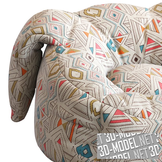 Замечательным дополнением современного пространства, комфортным, веселым и удобным станет кресло-мешок. Этот вариант дополнен милыми заячьими ушами. предлагается кресло в четырех разных вариантах тканевой обивки.