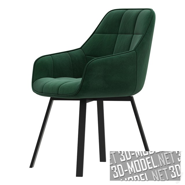Современное кресло с поворотным механизмом, модель EMILE-GN. Ножки кресла из металла, покрытие матовое, черного цвета. Они идеально сочетаются с бархатом обивки. Бархат темно-зеленый, смотрится очень красиво и элегантно. Кроме того, такая обивка легка в уходе, не изнашивается, не боится когтей питомцев, солнечных лучей и влаги. Кресло имеет сплошную вогнутую спинку и мягкое квадратное сиденье, что создает максимальный комфорт. Размер кресла: 56 х 60 х 88 см.