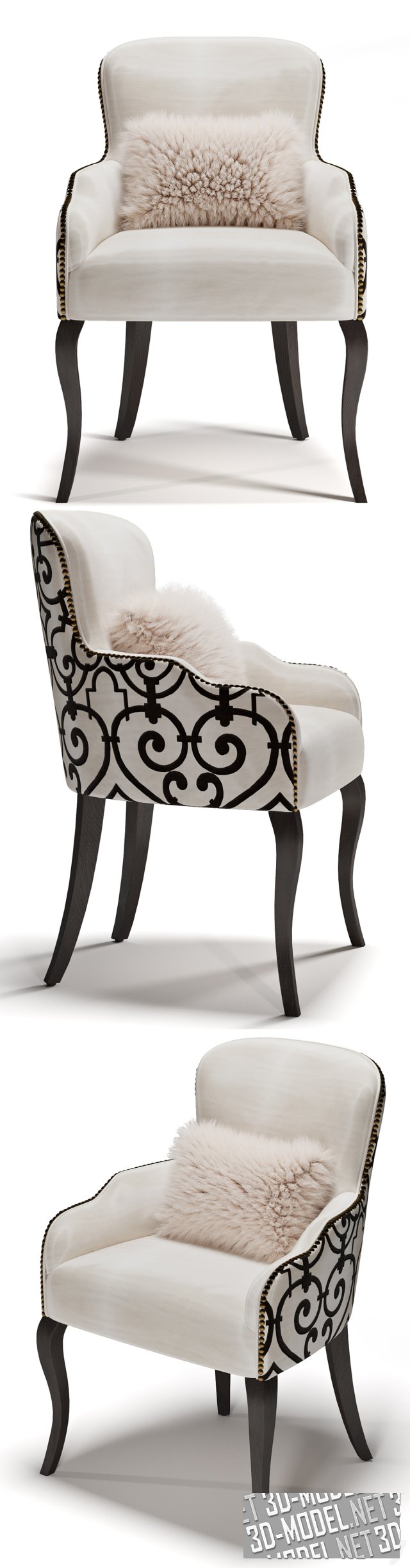 Размер кресла: 63 x 62 x 91h см. 3d-модель выполнена детально и качественно. Текстуры находятся в архиве.