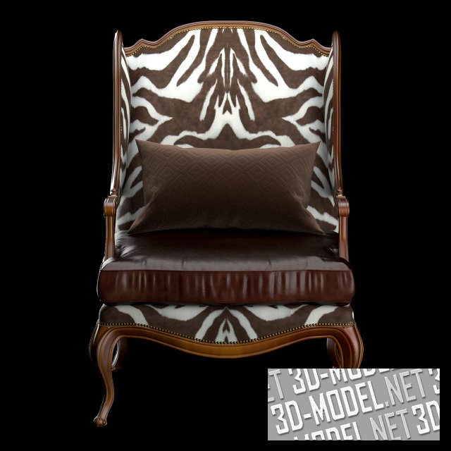 Выполненное в колониальном стиле кресло THRONE ZEBRA (art.: 01.109.MT. BL.ET1) от Loft&Concept. Мягкая основа, обитая материалом с текстурой шкуры зебры бело-коричневого цвета смонтировано на фигурной резной деревянной базе с четырьмя ножками. Отделка цвета орех хорошо сочетается с бело-коричневой зеброй и с темно-коричневой гладкой кожей на чехле квадратной подушки сиденья. Небольшая мягкая коричневая подушка под поясницу и развернутые внутрь «крылья» спинки с деревянными резными подлокотниками дополняют элементы комфорта кресла. Ряды декоративных мебельных гвоздиков с медными головками украшают периметры обивочной ткани. Габарит кресла: 71х70х81см.