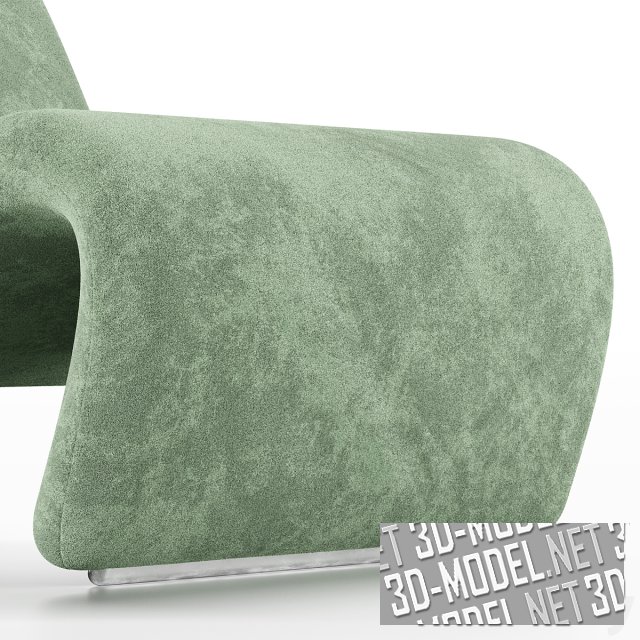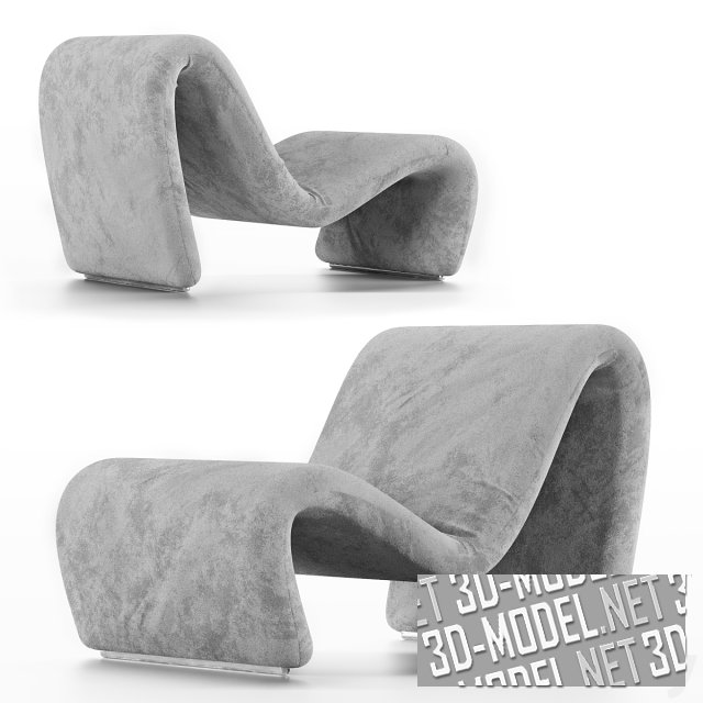 Оригинальное современное кресло Onde Etienne Fermigier. Конструкция выполнена из одного прямоугольного куска, плавно изогнутого в трех местах. Опора конструкции происходит на короткие торцы прямоугольника, через горизонтальные металлические вставки. При этом мягкая обивка из велюра окутывает все плоскости гнутой пластины каркаса. Представлено три цвета обивки: светло-серый, бледно-розовый и бледно-зеленый. Габарит кресла: 62х96х65см.