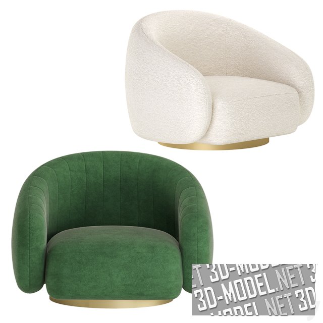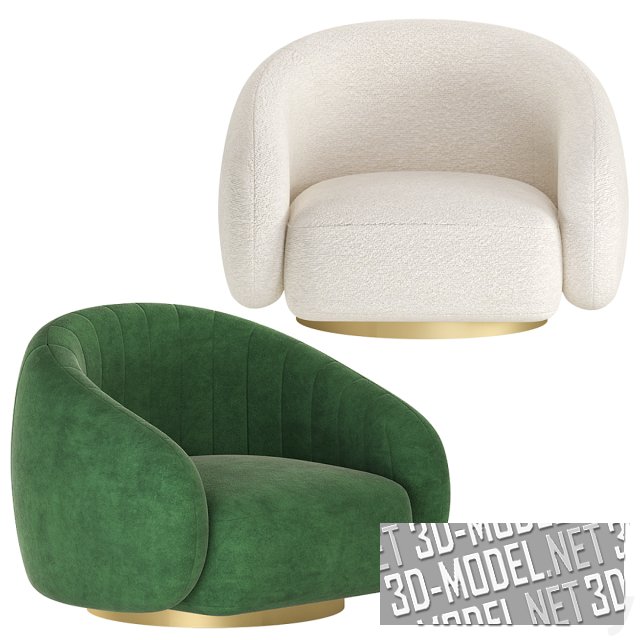 Вращающееся современное кресло BRICE от Eichholtz. Компактное массивное основание с огибающей спинкой смонтировано на круглой площадке с золотистым цоколем. Представлены две модели: с белой буклированной обивкой и с травянистым зеленым велюром с вертикальной прострочкой на спинке. Габарит кресла: 96х86,5х72,6см
