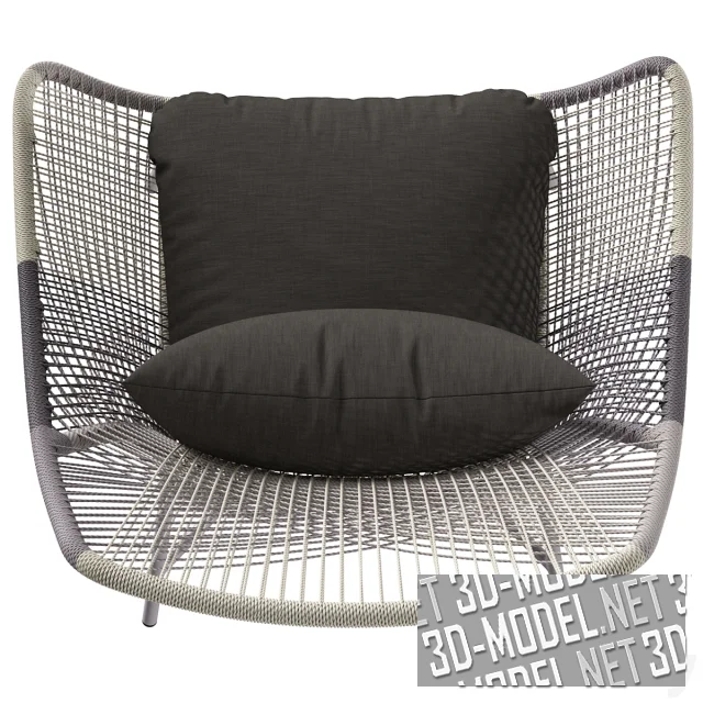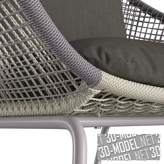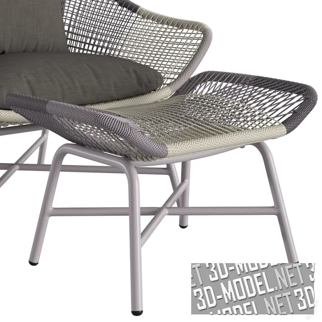 Плетеное из синтетического шнура на металлическом каркасе кресло и подставка для ног Huron Large от West Elm. Влагостойкие материалы и качественная отделка металлических частей, легкость стиля и приятные оттенки (серый и бледно-фисташковый шнуры на сером каркасе) изделия позволят применить его в саду, на террасе дома, в летнем прибрежном кафе, на пляже. Пара больших мягких подушек темного серо-коричневого цвета добавят комфорта. Габарит кресла: 100х95х103см. Габарит оттоманки: 67х47х43см.