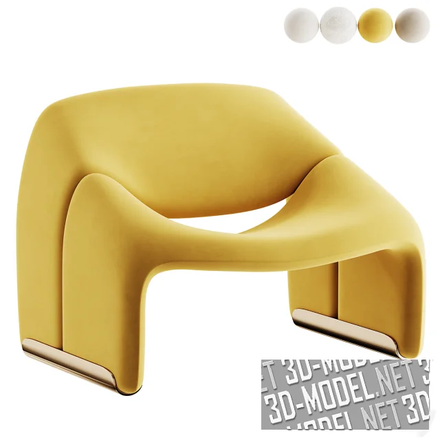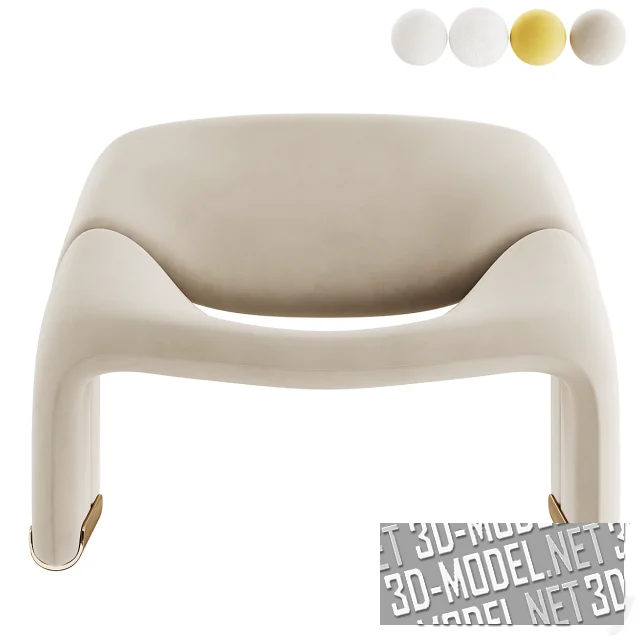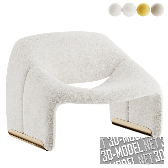 Футуристичное минималистичное кресло Groovy от Artifort, с неглубокой эргономичной посадкой. Обтекаемые формы с невысокой спинкой и углубленным сиденьем удалось получить благодаря основанию из анодированного алюминия. Скругленные металлические золотистые накладки на нижних концах двух опор отлично гармонируют с четырьмя вариантами отделки корпуса (белый матовый, белый букле, желтый и «слоновая кость»).