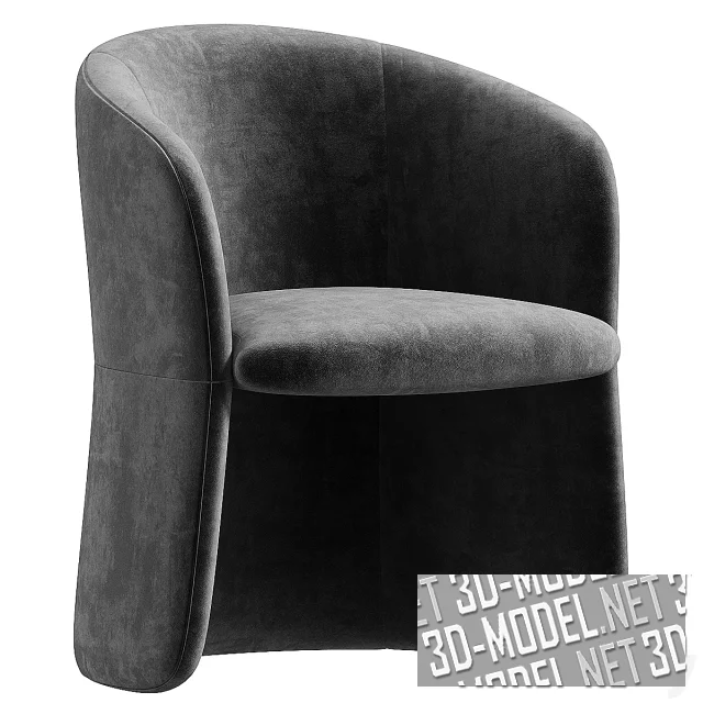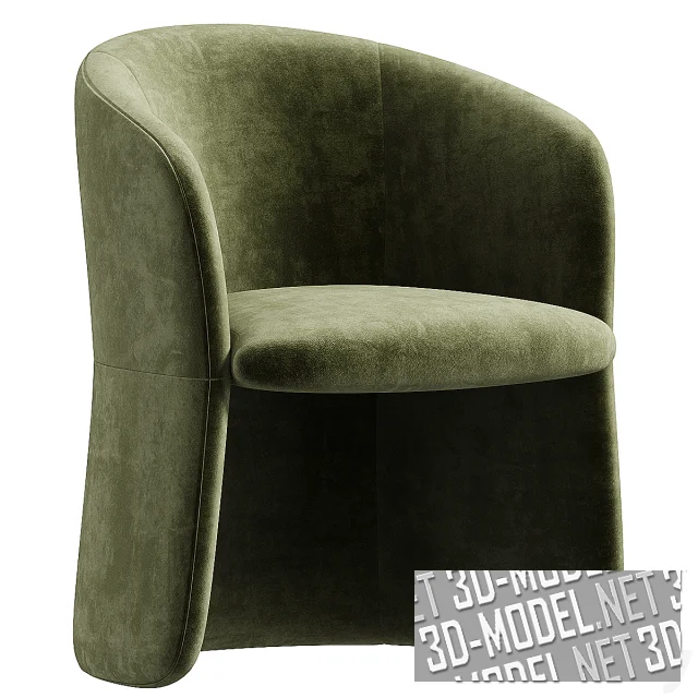 Небольшое легкое кресло JANETTE от Gallotti Radice. Основа кресла - элемент на основе гнутой фанеры с пенополиуретаном, образующий опору и огибающую скругленную спинку, переходящую в подлокотники. В этой детали закреплено полукруглое мягкое сиденье. Основа кресла и сиденье полностью обиты велюром. Представлено три варианта цвета обивки: терракотовый, болотно-зеленый и темно-серый.