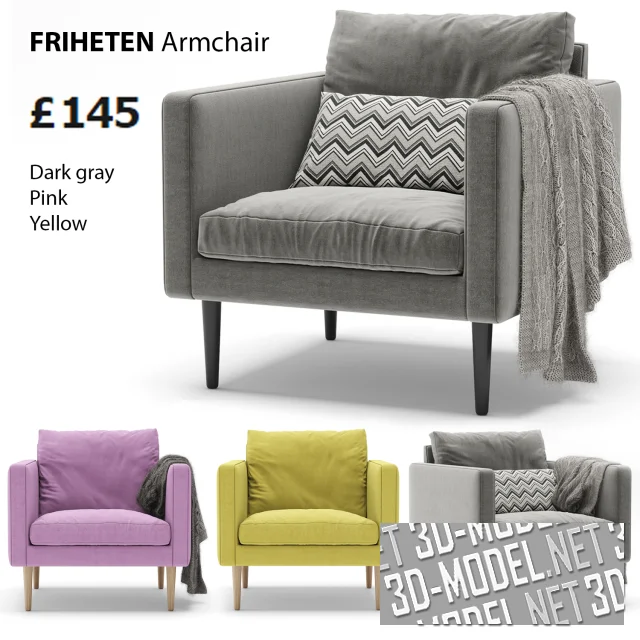 Серия мебели Friheten из IKEA, к которой принадлежит это привлекательное кресло, отличается элегантным и современным дизайном, характеризующимся чистыми линиями и минималистской эстетикой. Каркас изготовлен из прочной высококачественной древесины, что обеспечивает прочную основу. Кресло обито мягкой, но эластичной тканью, доступной в различных цветах на любой вкус и стиль интерьера. Подушка сиденья имеет мягкую подкладку, обеспечивающую комфортное сидение, а спинка предлагает достаточную поддержку.