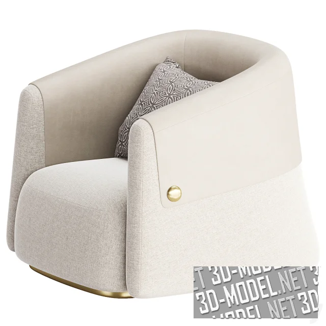 Элегантное вращающееся массивное клубное кресло MANCHETTA от MORADA. Площадка кресла и круглые «запонки» на декоративных «отворотах манжет» (элемент из кожи цвета слоновой кости, начинающийся на внутренней плоскости спинки и переходящий на наружную плоскость) выполнены из золотистого металла. Остальные элементы обиты текстилем чуть более светлого тона. Декоративная квадратная подушка декорирована орнаментом из кругов в песочно-белых тонах.