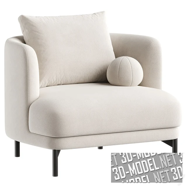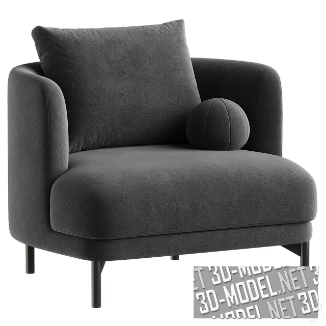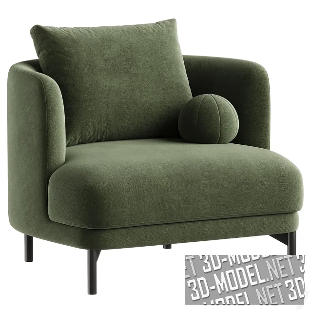 Низкое массивное кресло NOVA от mononova. На четырех черных невысоких ножках. Мягкое сиденье, невысокая огибающая спинка дополнены квадратной подушкой и мягким шаром. Все мягкие элементы обиты текстилем пяти вариантов: белое букле и велюр четырех цветов (темно-серый, бледно-зеленый, белый, коричневый).