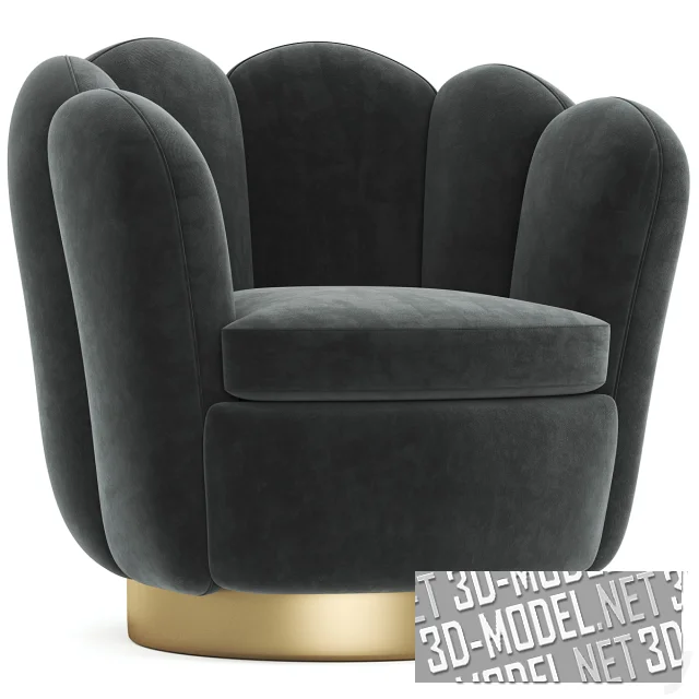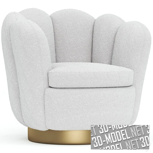 Современное кресло на золотистой круглой вращающейся основе - модель Mirage Savona Nude. Огибающая спинка с подлокотниками выполнены в виде шести мягких, закругленных сверху вертикальных элементов. Сиденье двухслойное (массивная основа и небольшая подушка). Обивка представлена в трех вариантах: бледно-розовый и черный велюр с разводами и белый букле.