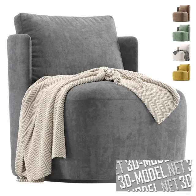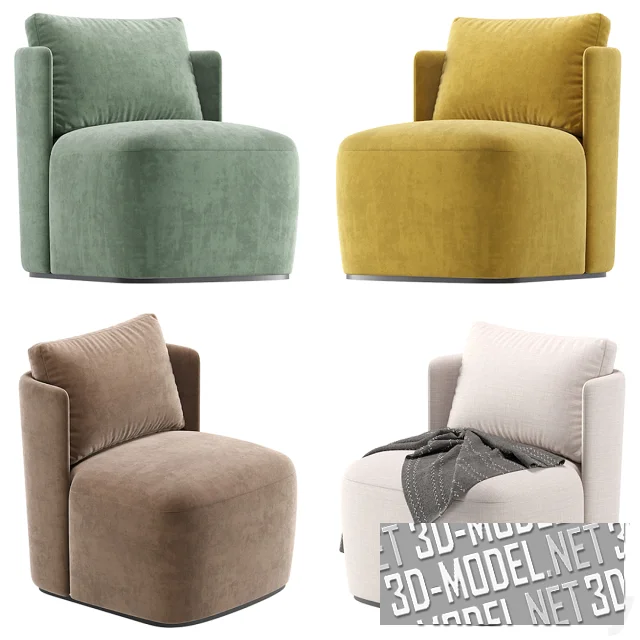Массивное современное кресло MADEIRA с велюровой обивкой, от производителя Cazarina Interiors. К огибающей спинке прислонена большая квадратная мягкая подушка. Обивка представлена в пяти вариантах: серая, желтая, белая, бледно-зеленая, светло-коричневая. Некоторые из вариантов дополнены пледами.