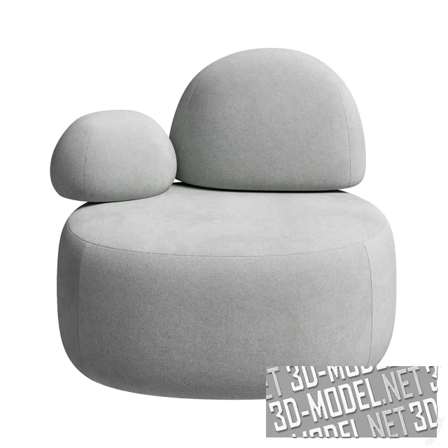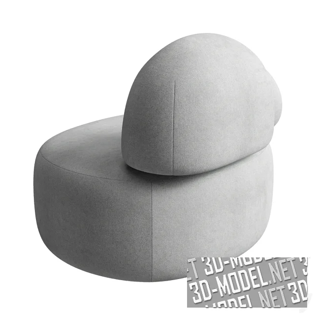 Современное серое кресло Guriy. Овальное мягкое сиденье дополнено асимметричными полукруглыми выступами (спинкой - побольше, подлокотником - поменьше). Высота сиденья кресла - 48см. Обивка - Aura, 14 Silver.