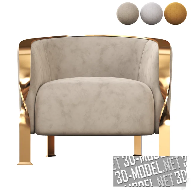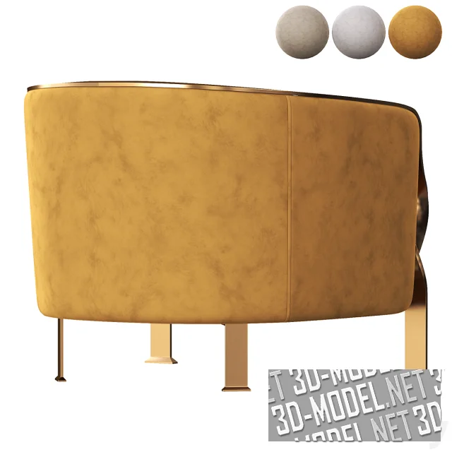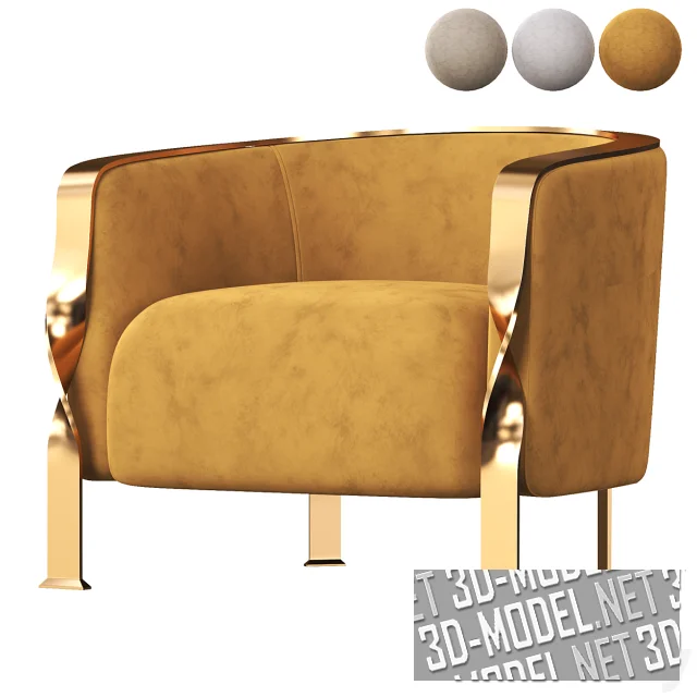 Элегантное кресло Paris от фабрики Rugiano создано в стиле Арт-Деко. Полукруглая спинка делает кресло одновременно компактным и удобным. Бронзированные полированные скрученные ножки и такая же отделка верха спинки предают Paris особый лоск. В сцене представлены три варианта обивки.