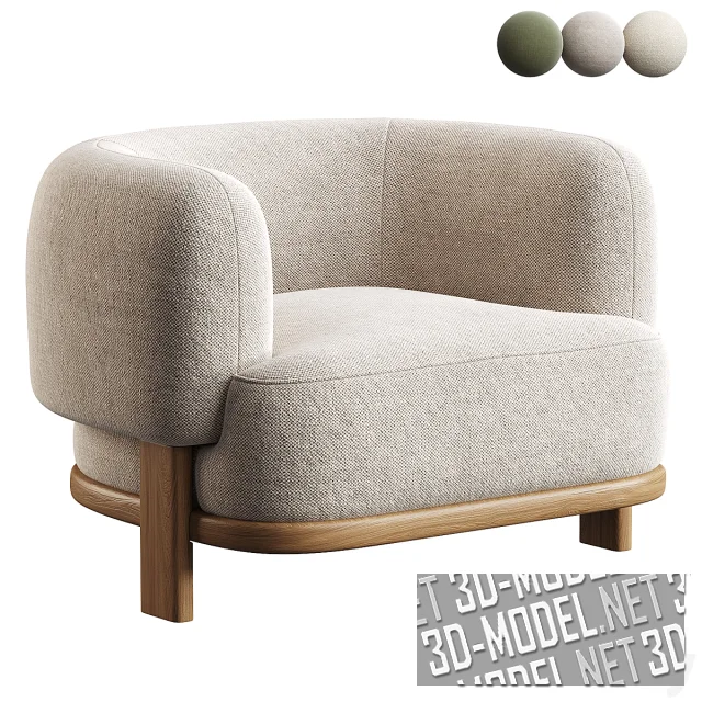 Низкое массивное современное кресло Buho от The LifeStyled Co. Мягкие элементы смонтированы на крепкой раме из дуба, с тремя невысокими ножками. Подушка сиденья и прямая низкая спинка, переходящая в неглубокие подлокотники той же высоты, обиты текстилем. Представлено три варианта обивки: крупнотекстурный грязно-белый «холст», ткань оливкового цвета с мелкой текстурой, белое букле. Габарит кресла: 96,52х85х66см.