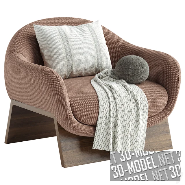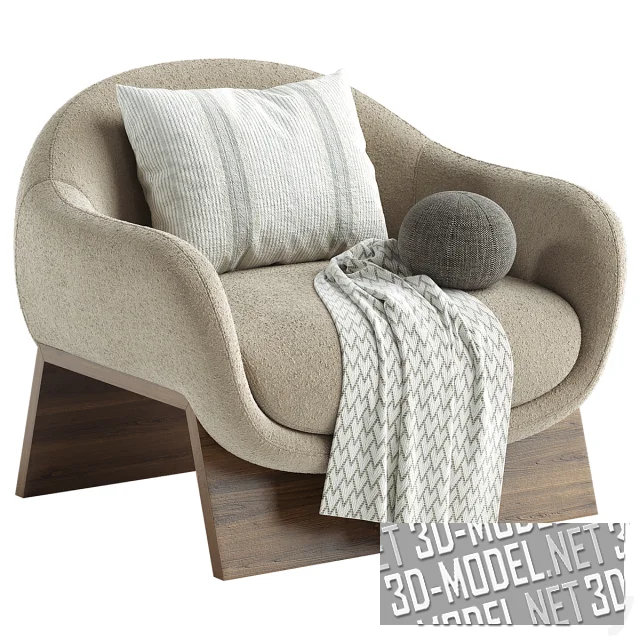 Современное элегантное акцентное кресло BOOLEAN от Bonaldo. Плавные линии мягкого сиденья со скругленной невысокой спинкой, переходят в подлокотники и сведены в углубленном скругленном ложе сиденья. Опора кресла выполнена из трех деревянных панелей в П-образной конструкции с расширяющимся основанием. Опора размещена поперек сиденья. Обивка мягких элементов (корпуса и подушки сиденья) представлены в трех вариантах: белый крупнотекстурный холст, буклированная ткань грязно-белого цвета, текстиль крупного плетения светло-коричневого цвета. Дополненное мягким серым шаром, белым пледом с серым геометрическим орнаментом и свободнолежащей мягкой подушкой в чехле кресло напоминает скульптурную композицию в стиле супрематизм.