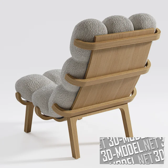 Комплект мебели (кресло и пуф) NUAGE от SOLLEN. Каркас представлен в двух цветах отделки (светлое и темно-коричневое дерево). Сиденье и спинка обиты мягкой тканью букле. В превью представлено 12 цветов обивки.