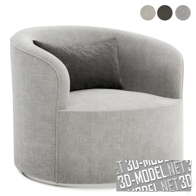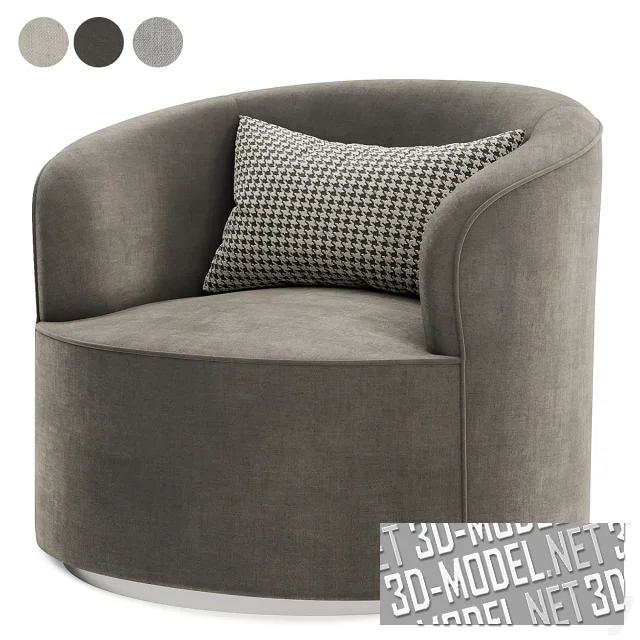 Современное круглое кресло с невысокой огибающей спинкой, переходящей в скругленные подлокотники - модель Raven от Diamond Sofa. Круглый металлический невысокий цоколь серебристого цвета. Сплошная мягкая обивка массивного сиденья и спинки представлена в трех вариантах: грязно-белая, светло-серая, серая. Кресло дополнено небольшой прямоугольной подушкой (в чехле с черно-серой «гусиной лапкой» или крупнотекстурном темно-сером). Габарит Raven: 96,5х92,5х76,5см.