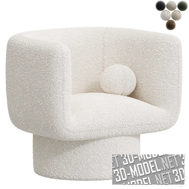 Современное кресло Adrian от StyleMe. Цилиндрическое основание, сиденье и уютная обволакивающая с трех сторон высокая спинка обтянуты велюром. Кресло с поворотным механизмом. В сцене представлены шесть вариантов цвета текстильной обивки.