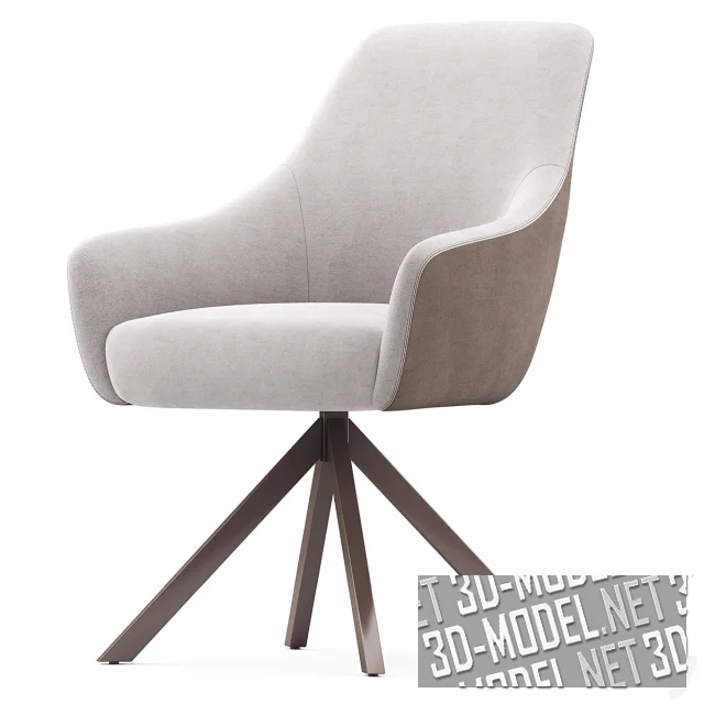 Легкое офисное вращающееся кресло Emma от IModern, на четырехногой металлической крестовине. Ножки крестовины сходятся к вершине. Мягкое сиденье и изящная огибающая спинка с плавным переходом в невысокие подлокотники обиты велюром двух цветов. С наружной плоскости спинки и подлокотников - серовато-коричневого цвета. Сиденье и внутренняя плоскость спинки и подлокотников - бледно-синий или белый велюр. Габарит кресла: 62х66х89,5см.