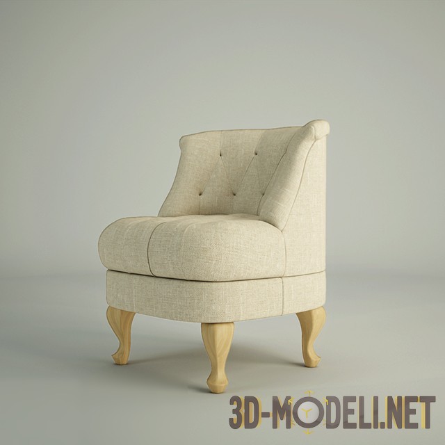 3D-модель классического кресла от компании Marko Kraus – «OLYMPIA». Артикул модели 61.001. Кресло имеет красивые резные ножки, выполненные из светлого дерева, и обивку из ткани, с элегантной простежкой. Модель не оснащена традиционными подлокотниками, но от этого «OLYMPIA» не становится менее комфортным и удобным креслом. Размеры кресла: 65 х 72 х 80 см. Модель с текстурами, в архиве также присутствует файл fbx.