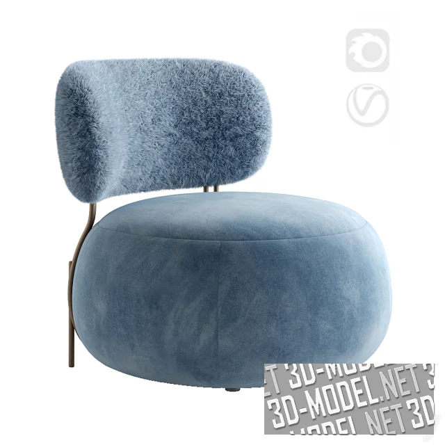 Современное круглое кресло SINO из коллекции Geo. на базе одноименного пуфа. К мягкому сиденью геоидной формы прикреплена спинка на металлических гнутых трубках. Горизонтальная овальная мягкая спинка немного изогнута, повторяя окружность сиденья. Представлено три варианта обивки: белое букле (BAMBI WHITE), бежевое кожаное сиденье и спинка из длинноворсового оранжевого меха (BAMBI ORANGE), голубой велюр на сиденье и голубой длинноворсовый мех на спинке (BAMBI BLUE). Габарит кресла: 75Х70Х67см. Высота сиденья - 37,5см. Легкосъемная спинка легко переоборудует кресло в пуф.