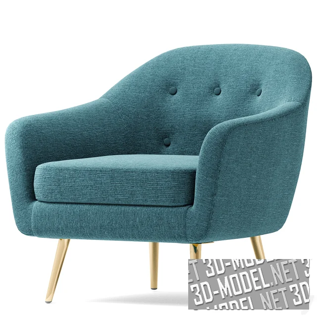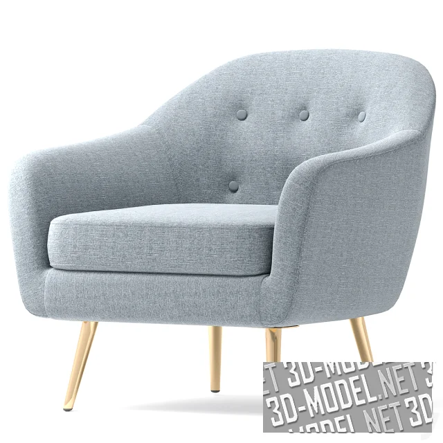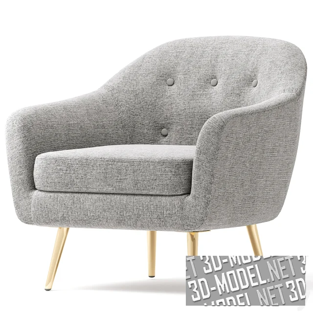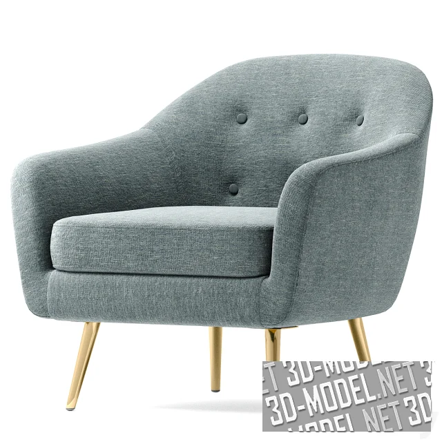Современное кресло с винтажными нотками стилей середины ХХ века - Carmen от Imodern. Корпус включает основу для подушки сиденья, невысокие подлокотники и скругленную, чуть выгнутую спинку с шестью пуговками-втяжками. Сиденье оснащено мягкой подушкой. Обитые мягкие элементы смонтированы на четырех золотистых металлических ножках. Текстильная обивка трех цветов: серый меланж, сееровато-сине-зеленый меланж, бледно-яично-желтый. Габарит кресла: 72х80х81см.