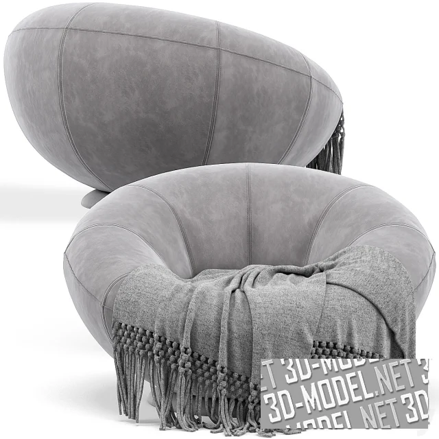 Уютное кресло Groovy, изготовленное в сотрудничестве West Elm с Pottery Barn Teen. Подходит для чтения, просмотра фильмов или видеоигр, просто отдыха. Имеет миниатюрный и низкий силуэт и поворотный механизм на 360 градусов для удобства перемещения. Кресло обтянуто текстилем серого цвета. На сиденье небрежно брошен серый плед с длинной бахромой.