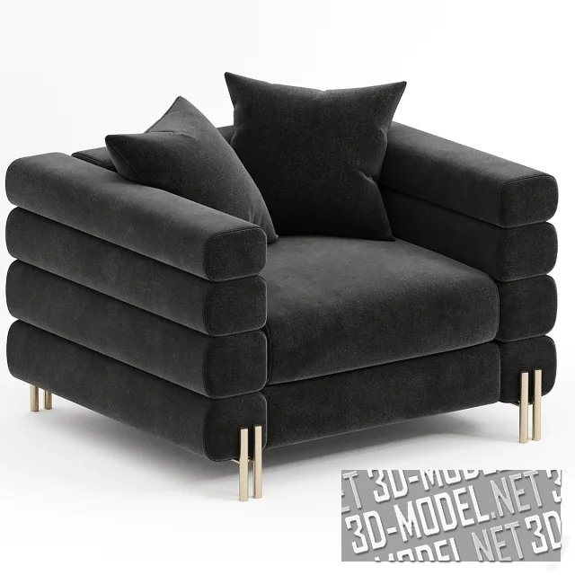 Стильное и современное кресло York от бренда EICHHOLTZ. Подлокотники представляют собой сшитые четыре валика. Мягкая обивка черного цвета не только элегантно смотрится, но и обеспечивает комфортный отдых. Изящные, но прочные металлические ножки прочно удерживают конструкцию. Размеры York: 1078x962x834 мм. Это очаровательное кресло поможет создать оригинальные интерьерно-дизайнерские решения.