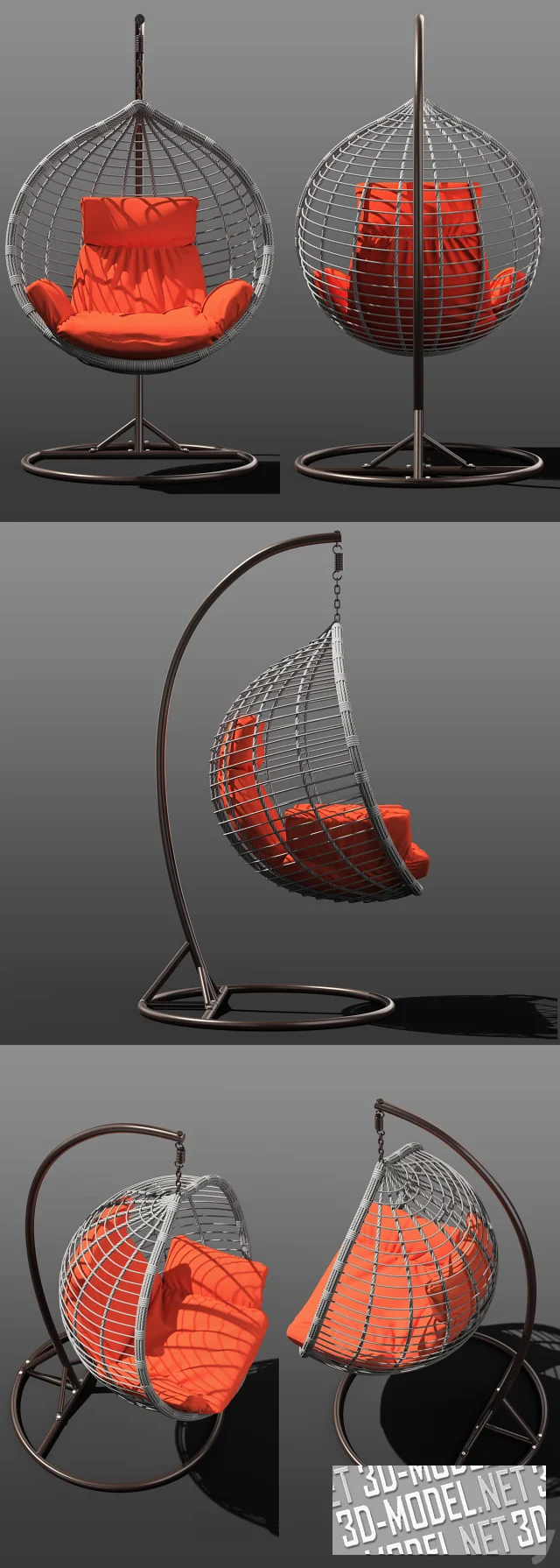 Плетеное подвесное кресло-качалка Acapulco (110х115 см) из искусственного ротанга на стальном каркасе (высота 200 см, основание диаметр 110 см). Дополнено большой мягкой подушкой из влагостойкой ткани оранжевого. серого, горчичного или светлого цвета с подлокотниками и высокой спинкой. Кресло может быть размещено, как в открытых, так и закрытых интерьерах.