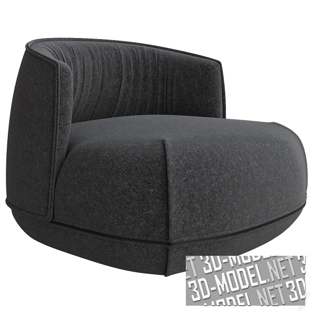 Массивное мягкое кресло в современном стиле - модель Brioni up от Kristalia. Низкая огибающая спинка и высокая подушка сиденья (от самого пола) обиты текстилем (скомбинированным из двух типов ткани или однородным). Внутренняя плоскость спинки декорирована свободными складками. Верхняя часть чехла сиденья съемная, соединяется с основой с помощью длинного замка-молнии.