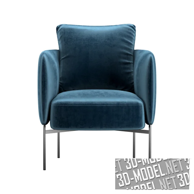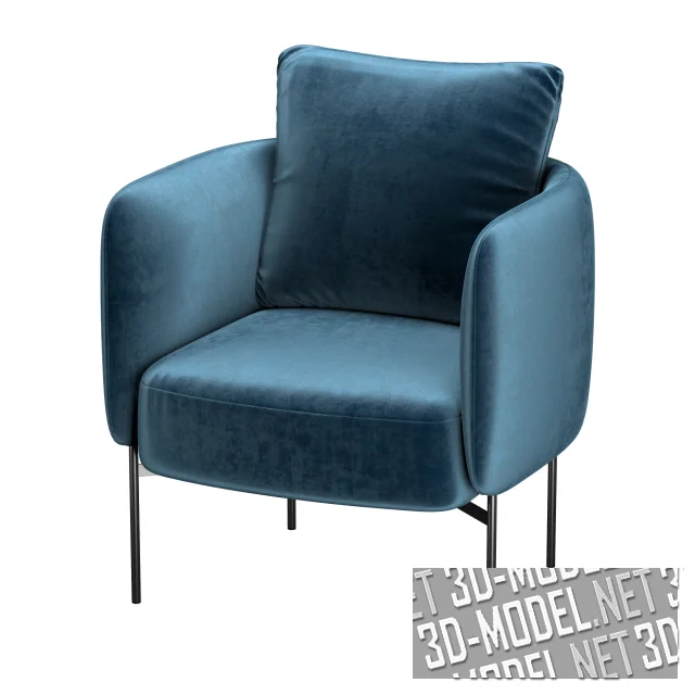 «Пухленькое» современное кресло на тонких металлических ножках - модель Bonnet Club от Adea, Финляндия. Дизайнеры: Mats Broberg и Johan Ridderstrale. Высокая подушка сиденья, огибающий элемент, включающий подлокотники и опору для квадратной подушки сиденья обтянуты элегантным темно-синим текстилем с металлическим блеском. Серебристо-черные гладкие ножки отлично гармонируют с цветом обивки.