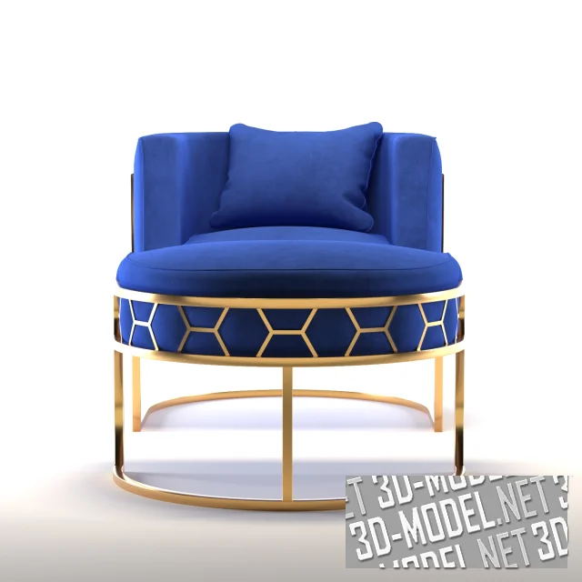 Уникальное и неповторимое кресло-бочонок в стиле Mid-Century Modern, с лазерной резкой шестиугольных деталей (узором в виде сот) на спинке и боковинах – модель Alveare tub chair Brass. Вдохновленное коллекционной американской мебелью середины века, кресло имеет стальной каркас с гальваническим покрытием из латуни. Бархатная ткань отделки доступна в различных цветах (здесь представлен королевский синий Royal Blue).