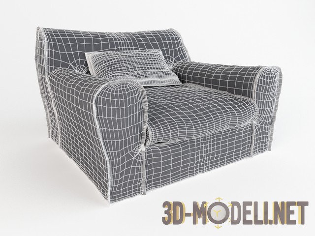 Пышное кресло Housse от итальянской компании Baxter, дизайнер Paola Navone. Размеры: 110 x 110 см, высота составляет 75 см. Каркас изготовлен из тщательно обработанной древесины тополя и ели, ножки сделаны из бука, который тонируют под цвет ореха. В наружной отделке используется кожа любого оттенка из каталога фабрики, а декоративные швы наружу придают креслу выразительную стильность. 3d-модель сделана на отличном уровне, отличается высокой детальностью и реалистичностью.