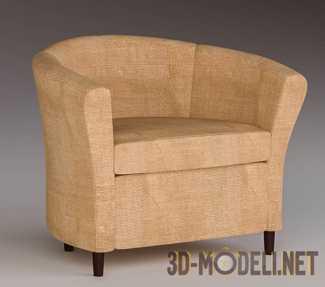 3D модель кресла, в двух вариантах обивки. Кресло большое, мягкое и уютное. Одна обивка бежевая, с плетением рогожки и нейтральным дизайном. Вторая очень активная – серая с белыми кольцами. Но, как ни странно, оба варианта обивки для кресла будут органично смотреться в одном и том же интерьере гостиной, например, стоящие рядом с журнальным столиком.