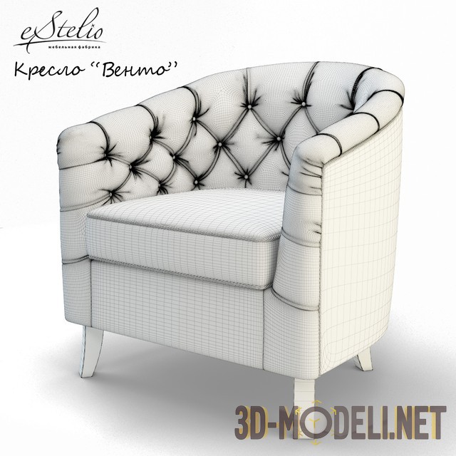 3d модель кресла а классическом стиле, производства мебельной фабрики Estelio, модель «Венто». Вся мебель этой фабрики производится вручную. отличается качеством, надежностью и отличным дизайном. Кресло «Венто», благодаря мягкой коже отделки и характерной для стиля простежке капитоне идеально впишется в традиционно оформленное пространство.