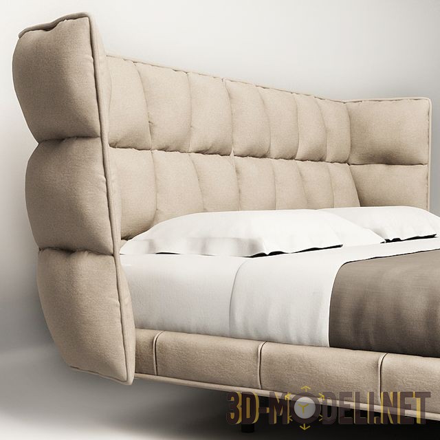 Современная кровать «Husk» от B&B Italia, дизайн Patricia Urquiola, 2013 год. Кровать отличает геометрический, мягкий и обволакивающий стиль, она очень удобна и уютна, а неординарное изголовье создает комфорт и сильный визуальный эффект. В дизайне кровати присутствует контраст между простотой и сложностью, который придает ощущение теплоты и гостеприимства. Кровать изготовлена с основанием из стальной рамы и предлагается в отделке из ткани или кожи. Размеры: 230 х 233/30 х 107 см