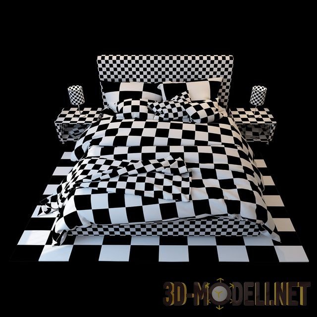 Современная двуспальная кровать от бренда Blest, серия Michelle, коллекция Unison. Коллекция включает в себя всю необходимую мебель для спальни: столик, банкетка, пуф, и, разумеется, кровать. Варианты обивки могут быть текстиль или натуральная кожа. По желанию кровать может быть изготовлена с нишей для белья. Дно нише съемное, что позволяет легко содержать в чистоте пространство под кроватью, не перемещая ее. Кровати с нишей имеют подъемный механизм. Michelle дополнена двумя удобными прикроватными тумбами, настольными лампами Eglo 31594, ковром USA и книгами.