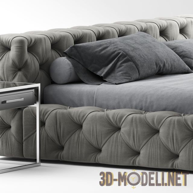 Двуспальная кровать Soho Tufted от бренда Rrestoration Hardware - отличный вариант для создания красивой и удобной зоны отдыха в спальне. С плюшевой мягкой спинкой и широким основанием, вся украшенная простежкой капитоне, кровать напоминает классическую мебель Chesterfield - плюшевые кресла в клубе джентльменов в Лондоне конца века, например. но чистые, простые линии и низкая посадка кровати наполняют ее исключительно современными функциями, что смотрится очень привлекательно. В комплекте присутствуют прикроватные тумбочки, постельное белье, подушки.