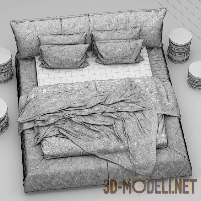 Современная двуспальная кровать в отделке из мягкой кожи, Paris производства Baxter. Дизайнер: Paola Navone, 2010 г. Каркас кровати сделан из дерева. Изголовье довольно простой формы, мягкое. Изножье не предусмотрено. Размер кровати: 235 х 255 х 92 см. Матрас приобретается отдельно.