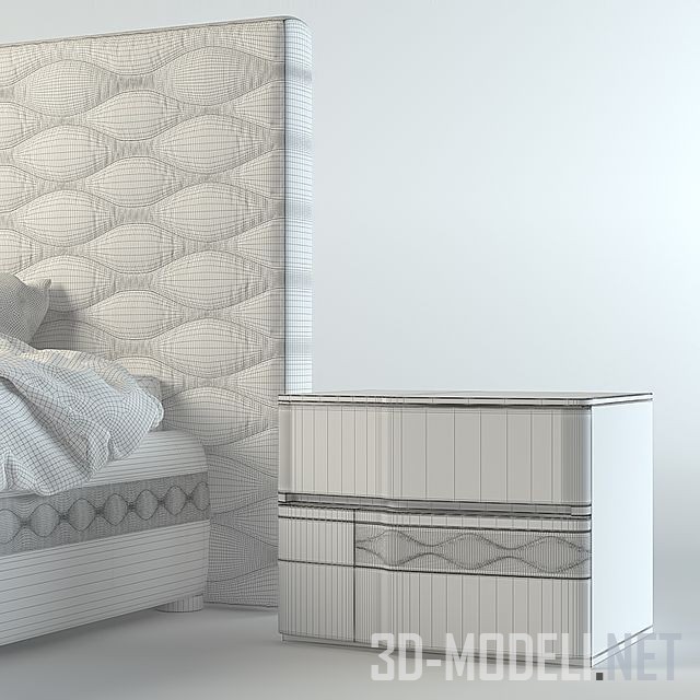 Двуспальная мягкая кровать с прямоугольной формы изголовьем и тумбами в комплекте, из коллекции Chanel. Производитель: DallAgnese. Дизайн Studio Arbet. Обивка для кровати предлагается в вариантах из микрофибры двадцати пяти цветов. Выбранный оттенок можно повторить в декорах прикроватных тумб, что будет очень хорошо сочетаться.