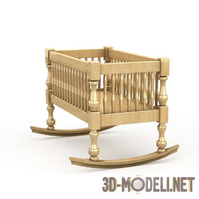 3D модель детской кроватки-качалки. Необходимый предмет меблировки детской комнаты - кроватка-качалка из светлого дерева. Простая, красивая, функциональная модель, с текстурами в архиве.